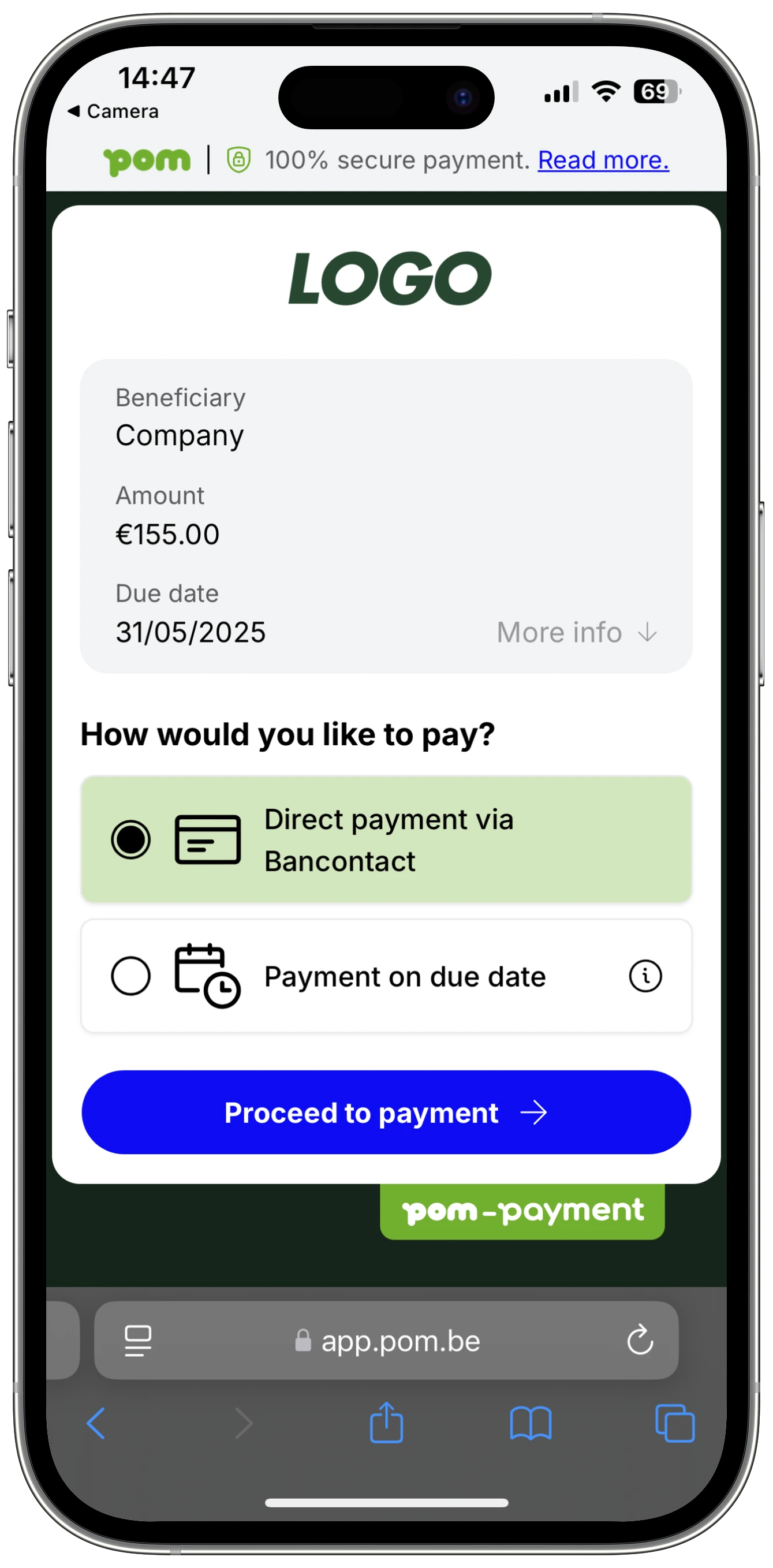 - Pay immediately (via Bancontact, Wero, Apple Pay, iDEAL, ...)